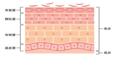 而表皮共分三層細胞,其中是顆粒層(stratum granulosum),是角質細胞完全角化的終點站。在這裡角質細胞最終會釋出半胱氨酸蛋酶-14(Caspase-14)來促進終末分化,形成完整的角質層,使具有最佳的屏障壁。其餘表層的作用及修復方法可以報讀以下連結的免費課程以進行了解。